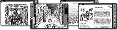 After "Passing Notes" we added a hypertext edition of the medieval classic, "The Imitation of Christ," a sophisticated journal so that our readers could listen to their own thoughts, a medieval adventure game, the monastery jukebox, and a series of volumes on the suppressed facts about the Kennedy assassination.