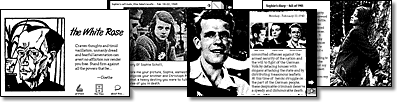 The most popular volume of the original library was an introduction to how the White Rose resistance group published an underground newsletter declaring the true reality of Hitler's war in Nazi Germany while the Gestapo hunted them down. The current CD-ROM version was done with the help of one of the few surviving members of the White Rose.