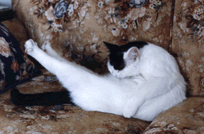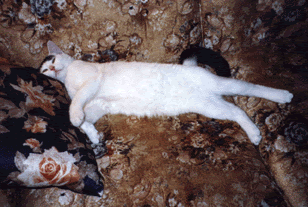 Those kitty aerobics sure are tiring! I had to crash after all that exercise, whew! Do I know how to pose or what? I'm movie star potential! |