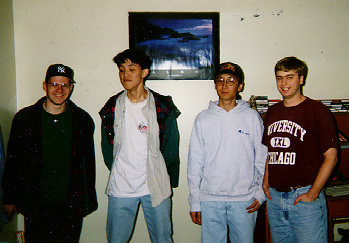 From left to right: Caine Schneider (palpatine), Ed Kan (Ed), Chris Hwang (vertigo), Joe LaChance (Wintermute)