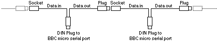Thus it was decided to use the serial port. Special cables were made in which the input and output were connected separately to two different wires coming out of the plug, and the two wires had a matching plug & socket on the ends: