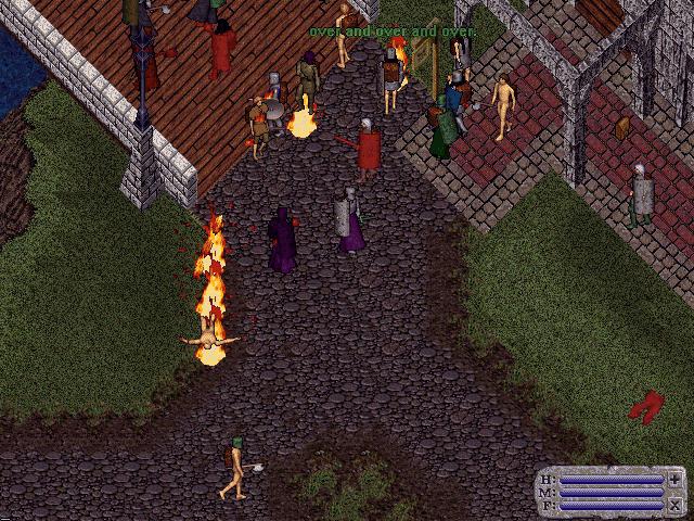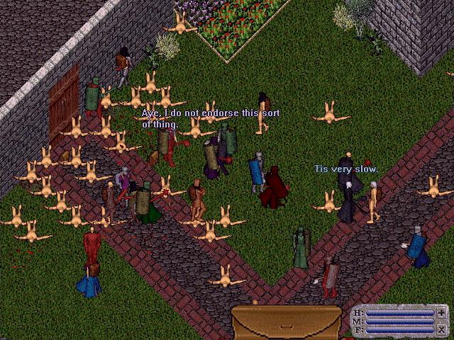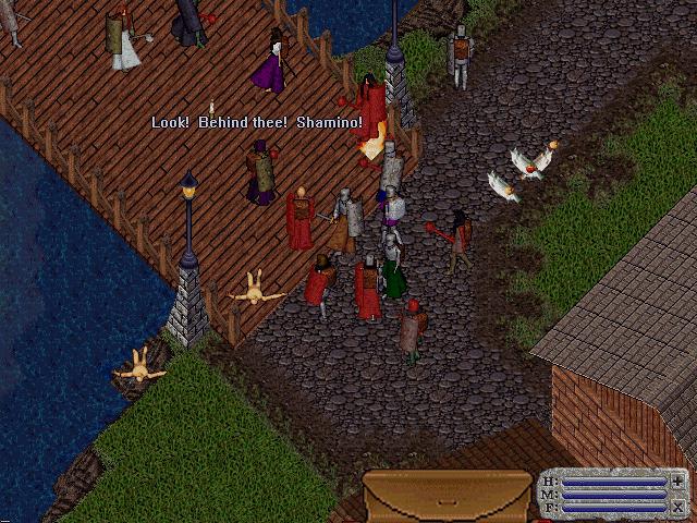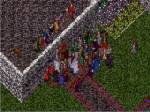 crowd at his Castle, Lord British wishes all farewell as the moongates to