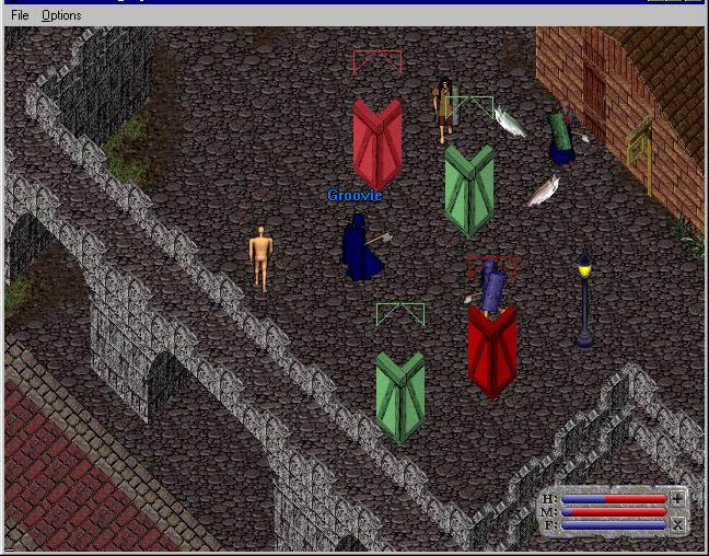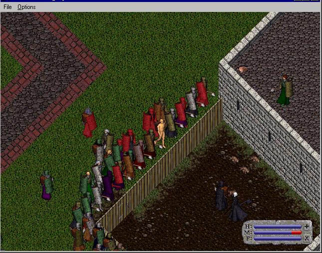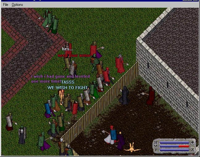 | Compassion at the temple (where dead players respawned) | Yes, an orc with a backpack | The developers having a little fun with us (player-controlled Hellhound) | |||